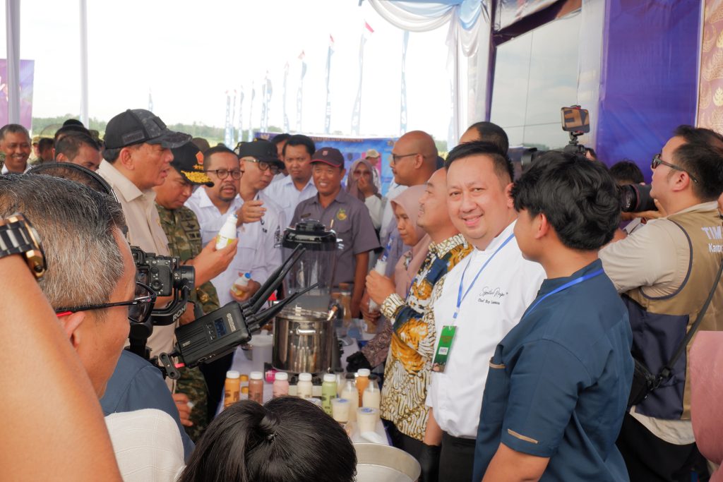 Turut hadir pula CV Puspita, mitra TNI Angkatan Laut, yang menghadirkan produk unggulan sari kedelai SaLe. Kehadiran CV Puspita mencerminkan sinergi nyata antara dunia usaha dan institusi pertahanan dalam mendukung keberlanjutan program ketahanan pangan nasional melalui inovasi produk lokal bernilai tambah.